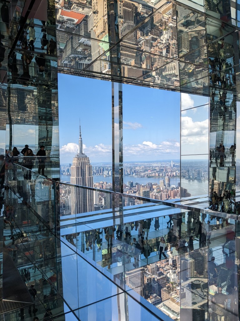 Ce lieu que je voyais sur mon compte Tiktok et Instagram était dans mes musts à faire. Je craignais un peu d’être déçue puisque je l’avais sur un piédestal envoyant tout le magnifique contenu qui était partagé suer les médias sociaux. J’espérais aussi que la température serait de notre côté afin d’admirer la ville de haut. Comme vous pouvez le voir sur les photos, nous n’avons pas été déçu et le prix de 50$ par billet en valait amplement la peine selon moi. J’avais acheté nos billets d’avance. En lisant les recommandations en ligne, j’ai décidé de prendre la plage horaire de 9h30. Cela a donc été notre première activité en arrivant le dimanche matin. Nous avons pu profiter de la belle température pour marcher de notre hôtel au One Vanderbilt. Cela nous a pris environ 25 minutes.