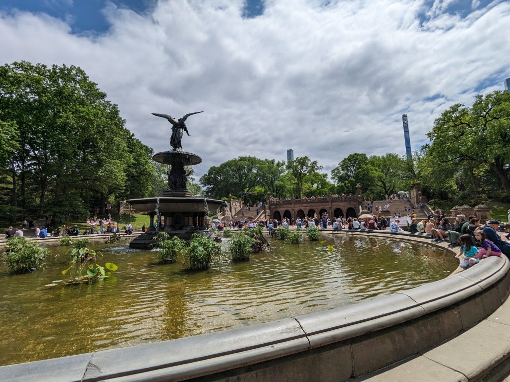 Central Park à mon avis est un incontournable de New York. Il est si grand qu’il est possible d’en découvrir des nouveaux espaces à chaque visite. Cette fois-ci, je souhaitais absolument voir la Fontaine et la Terrasse Bethesda. Pour ma mère et moi, c’était notre première fois où nous nous promenions sans vraiment avoir de but précis (autre que voir la fontaine et et la terrasse). Nous avons pu observer les New Yorkais picrique dans le park, jouer au volley ball simplement profiter de cette journée ensoleillée.