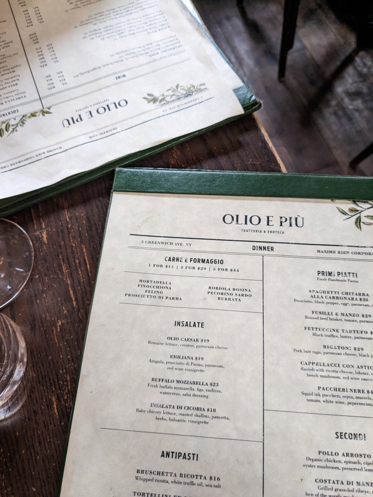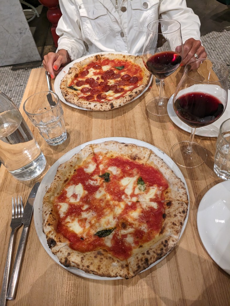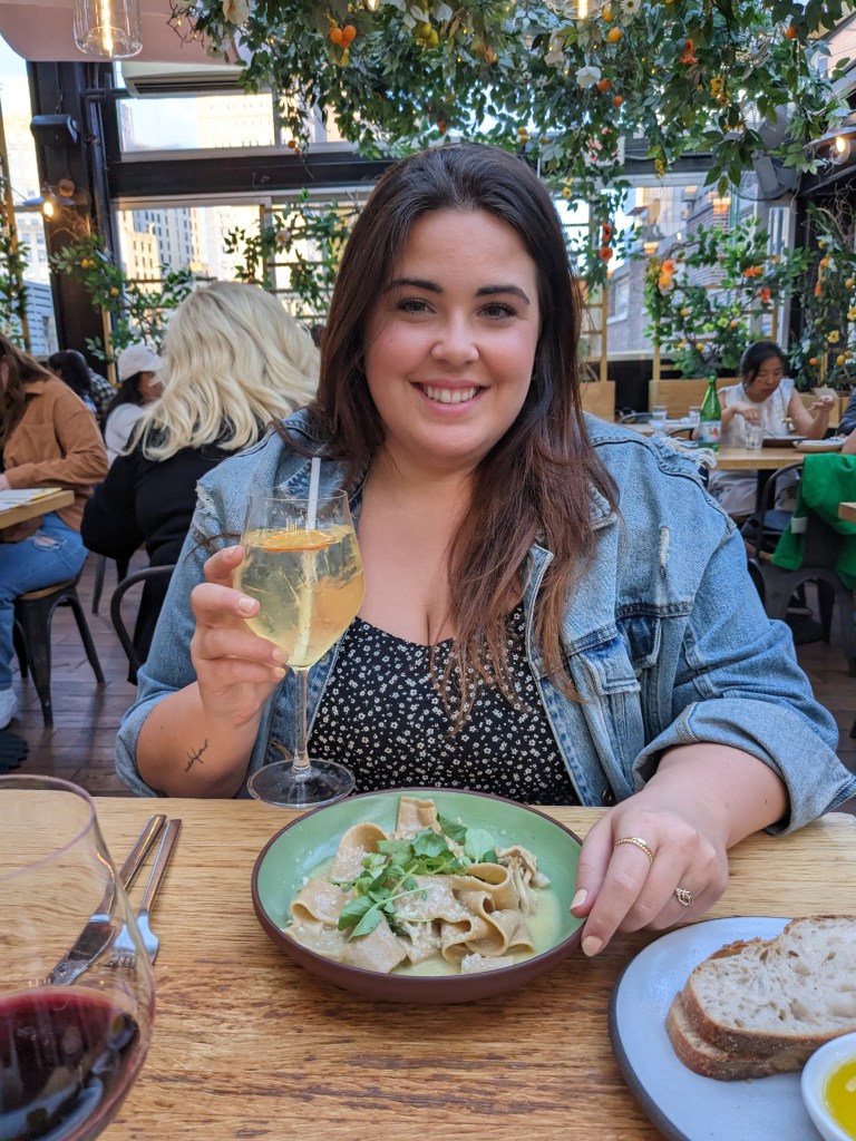 La réputation d’Eataly n’est plus à faire. Cette épicerie italienne voisine du Flatiron Building a un bar central où il est possible de prendre l’apéro ainsi que 4 restaurants avec chacun leur spécialité (pâte, pizza, poisson, etc.). Nous sommes allées souper au restaurant dont le menu change selon les saisons situé au dernier étage de l’immeuble à notre premier soir. Ce endroit était une des priorités sur la liste de ma mère. Dû à la proximité avec notre hôtel, nous avions pris l’habitude d’aller prendre un verre avant d’aller souper au bar central. Nous pouvions voir les gens faire leur épicerie avec un verre de vin blanc à la main. Très différent des dégustations du Costco.Nous avons aussi essayer la pizzeria à notre dernière journée. Finir un voyage à New York avec une pizza est selon moi maintenant un incontournable.